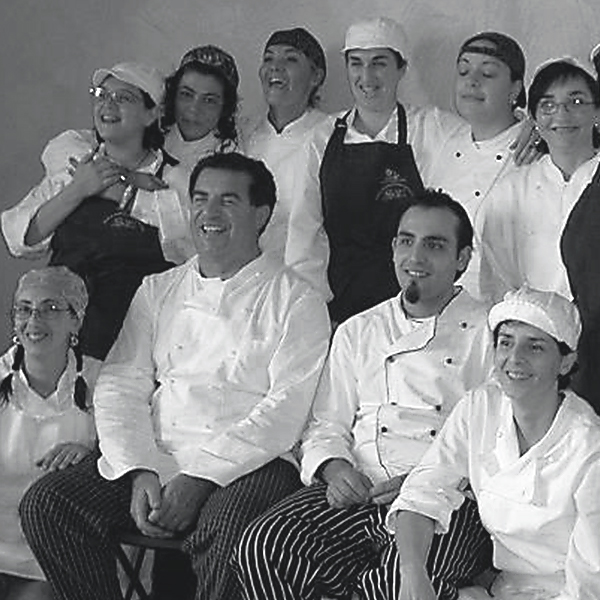 Se dovessi individuare il momento in cui è sbocciato l’amore tra me e la cucina, non avrei dubbi: quando mia nonna paterna tirava la sfoglia all’uovo col mattarello. Rimanevo incantato a guardarla, e percepivo un’attrazione irresistibile verso quel mondo. Per uno come me, innamorato della cucina già da bambino, crescere nella mia famiglia è stato un autentico privilegio. Mio padre Piero subentrò nel 1970 nella gestione del negozio di alimentari di famiglia, che avrebbe trasformato poi nel primo catering in città. Grazie alla sua convinzione che “il palato va educato fin da bambino”, sono cresciuto tra mille odori, in un’infinità di prodotti, tra formaggi, verdure e ortaggi, inebriato durante le feste da panettoni artigianali, torroni, frutta secca, uova pasquali e colombe.